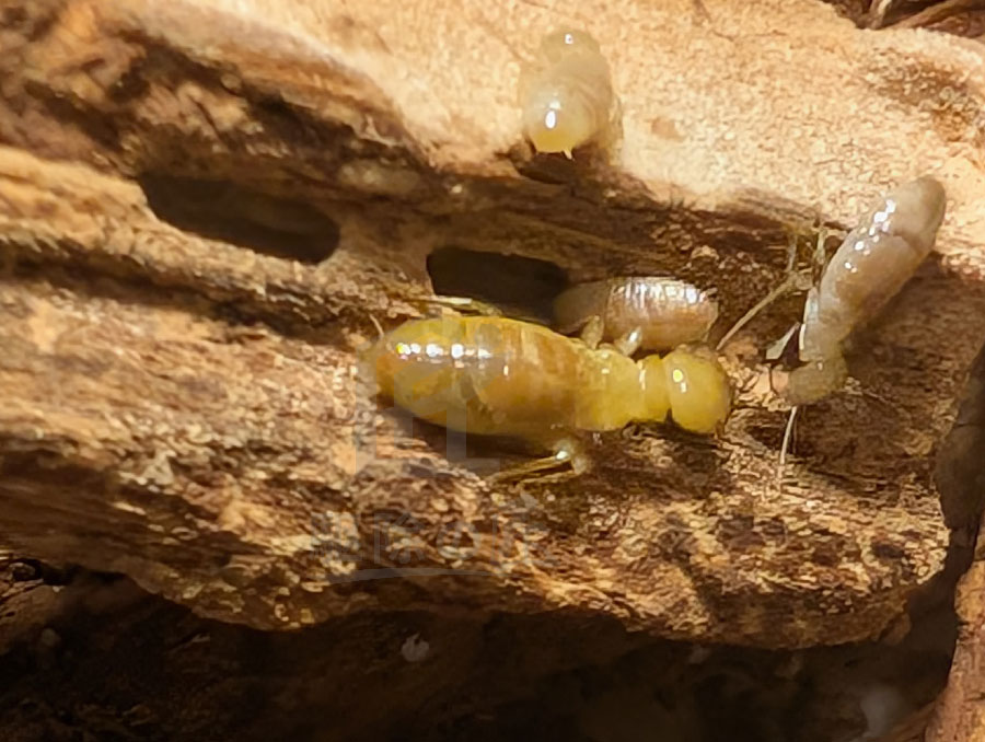 訪問したのは梅雨前でした。イエシロアリの羽アリは、梅雨になると一斉に飛びます。 羽アリとなって飛び立つ準備をしている、ニンフ(羽アリになる前のシロアリ)がみられます。